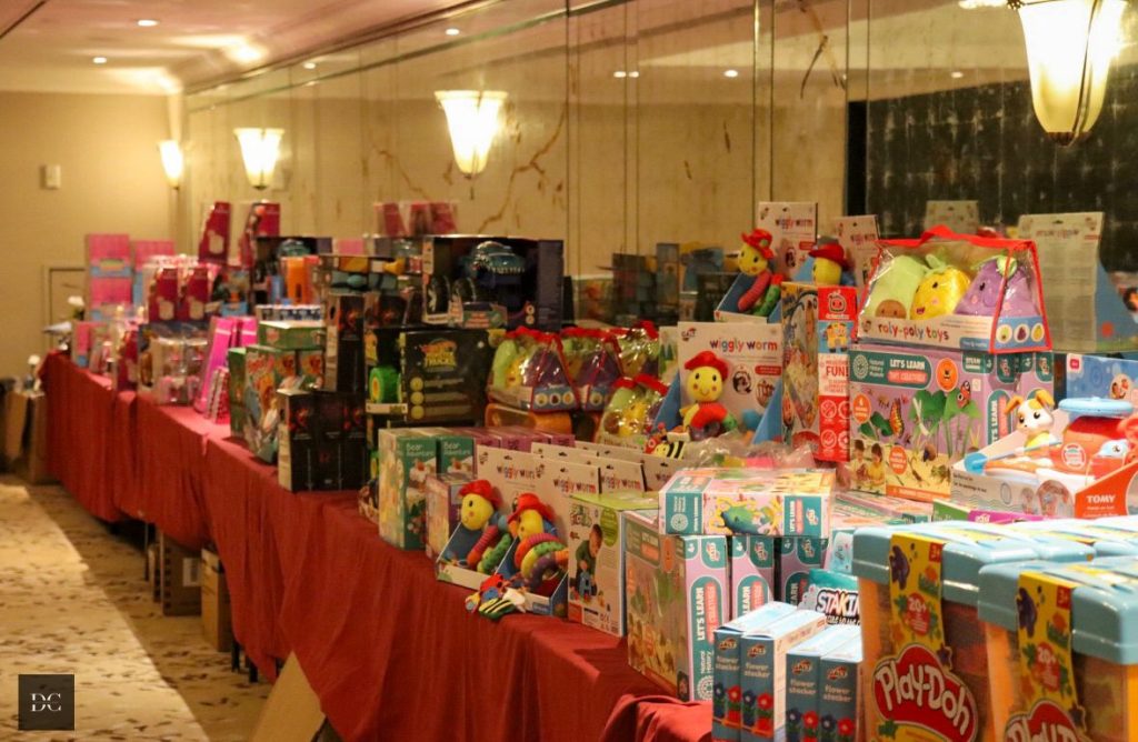 The Great Room was transformed into a kaleidoscope of colour, with over 70 tables festooned with balloons and a festive grotto overflowing with toys donated by leading brands.