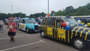 Many drivers choose to decorate their taxis, don’t worry if not, because we will supply you with balloons and posters. There is a prize for ‘best dressed taxi’ on the day.